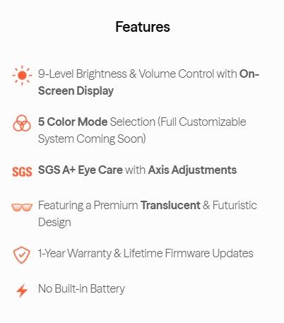 VITURE Luma Pro also accommodates nearsighted users with -4.0D myopia adjustments and features our signature electrochromic film lenses, all in a redesigned matte translucent frame.