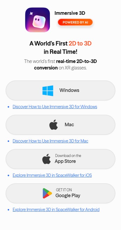- Real-time 2D-to-3D conversion powered by SpaceWalker
